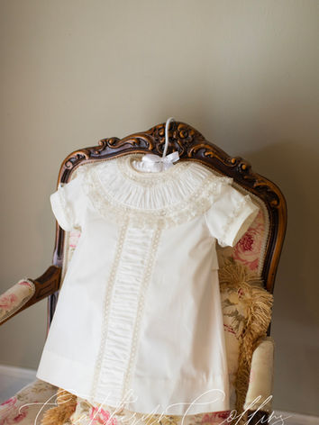 Classic A-line garments whether for boy or girl are a wonderful addition to your child's heirloom wardrobe. This style is versatile and can be made as a casual, every item or as a special occasions outfit. The design options are truly endless and may include pin tucks, puffing, pleats, and hand embroidery. Please contact us to discuss a custom apron, A-line dress, or diaper set for your sweet little one.